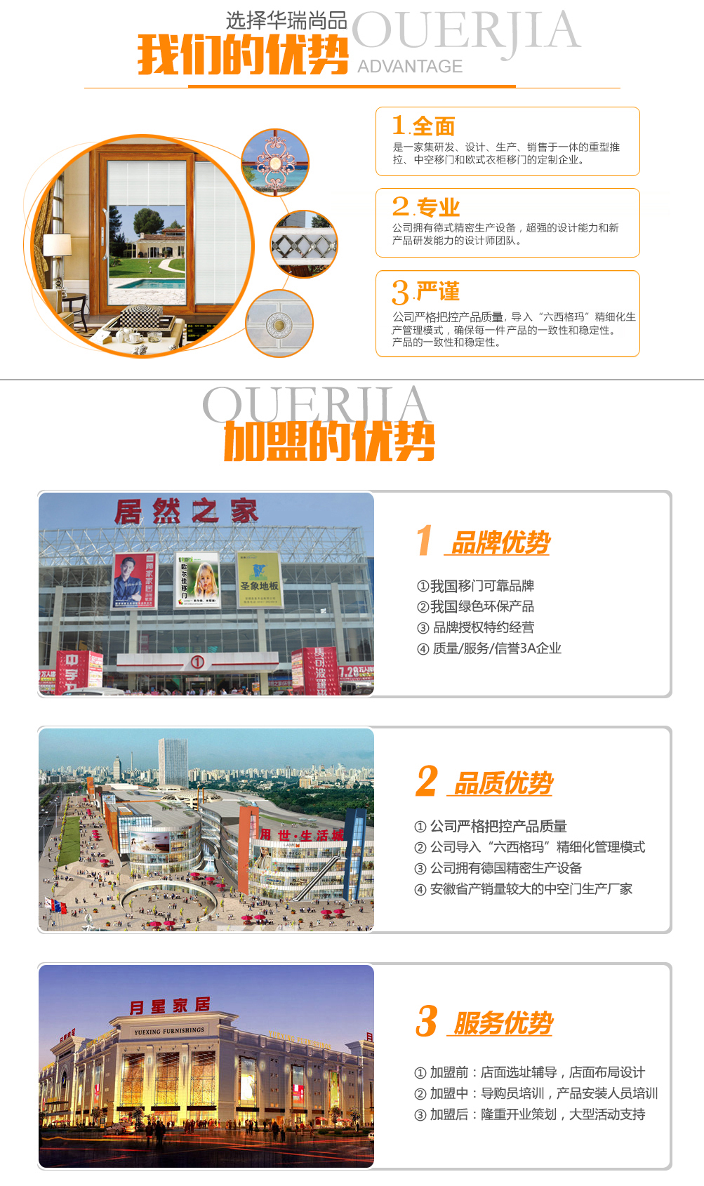 合肥歐爾佳移門廠,擁有“歐爾佳”和“華瑞尚品”兩個品牌,是一家集研發、設計、生產、銷售于一體的重型推拉、中空移門和歐式衣柜移門的定制企業。其有安徽生產基地(合肥市廬陽產業園)和山東生產基地(山東省濟南市)。 公司奉行“科技、環保、人性、時尚”的設計理念,堅持以“創新興業,人才為本”為企業宗旨,秉承“全程專業無憂”1對1貼心服務理念,贏得世界的目光。公司擁有德式精密生產設備,超強的設計能力和新產品研發能力的設計師團隊,配備從事移門衣柜等樣式家具加工生產多年的專業技術人員,嚴格質量把控,確保每一件產品的一致性和穩定性。 歐爾佳移門作為歐式生活方式的典范,注重時尚、環保和人文關懷,從原材料的選用上著手,從源頭上確保產品的綠色環保,結合國際化的設計風格,推陳出新將使用功能主義和簡約時尚風格完美結合...更多>